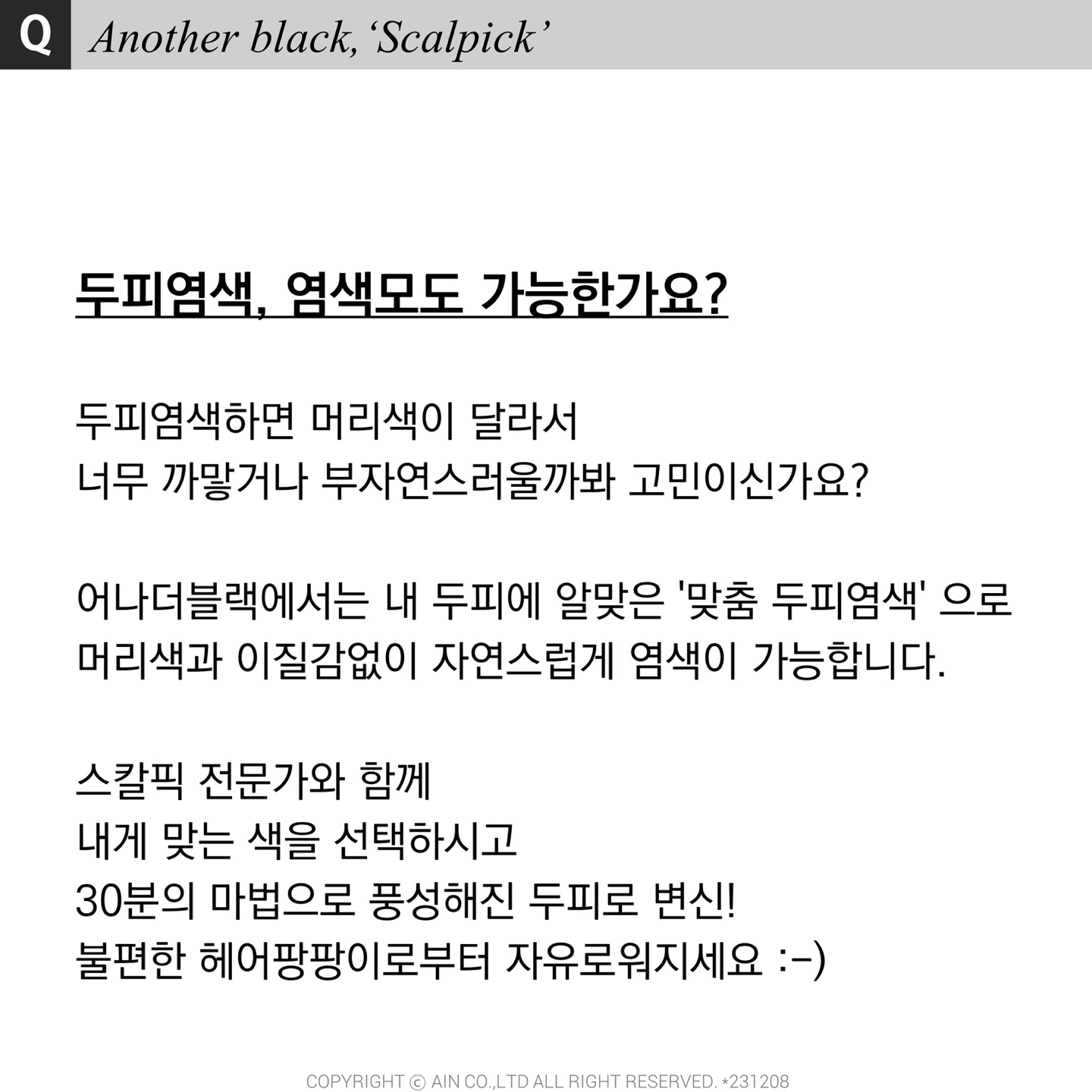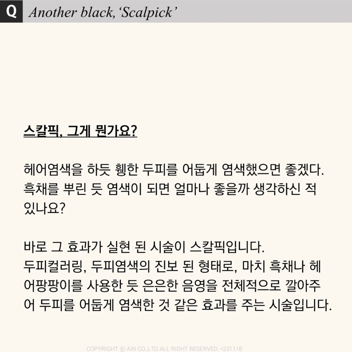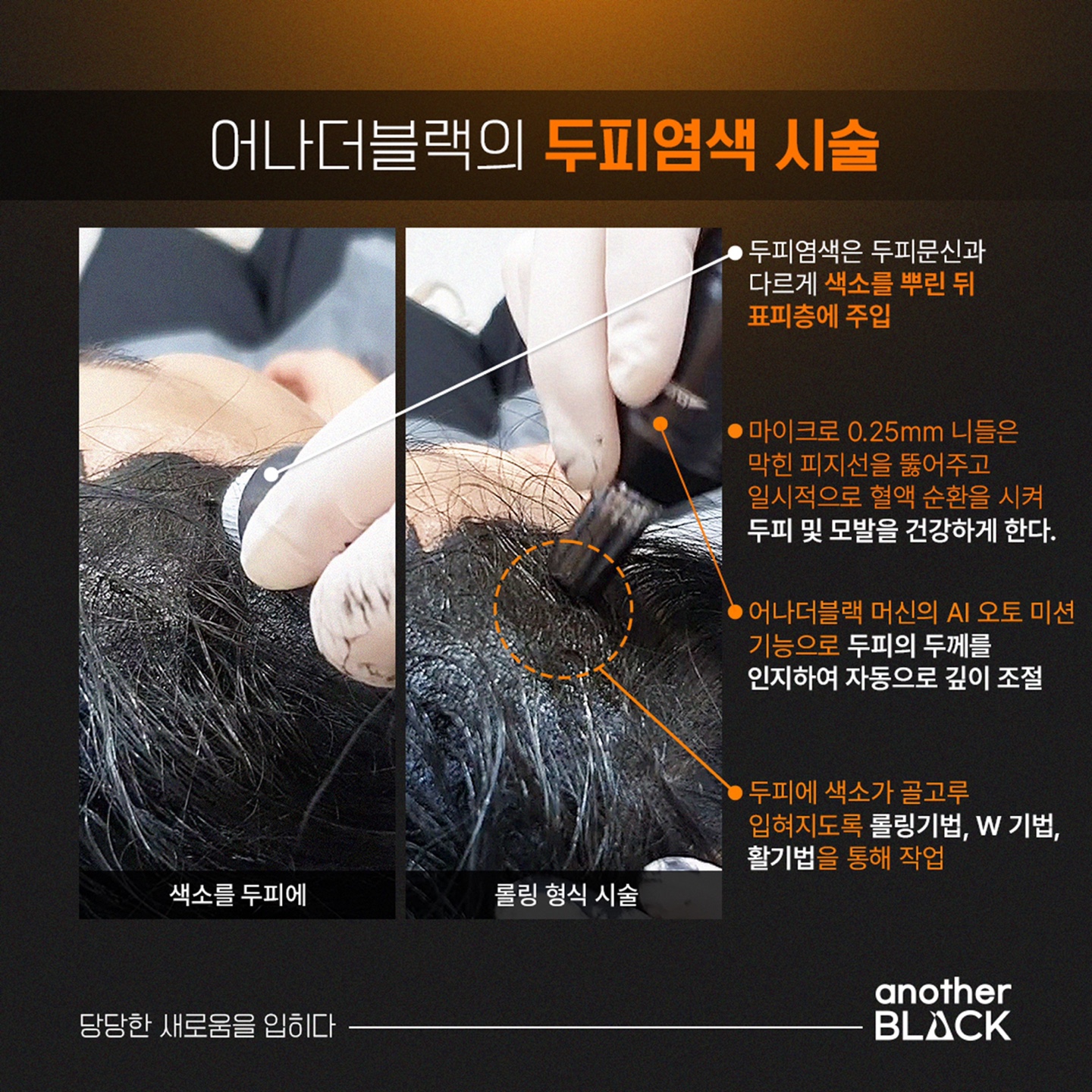기존 두피 문신과는 차별화 된 신개념 두피염색 개념으로 흑채와 같은