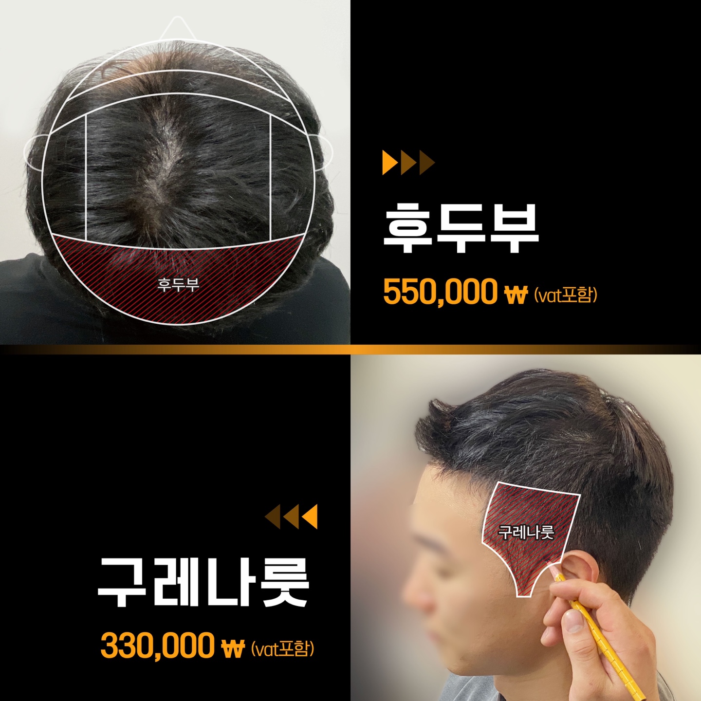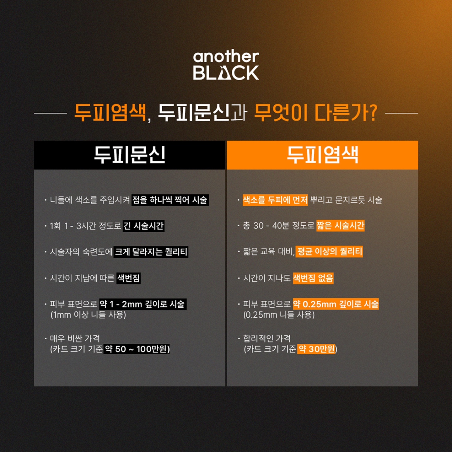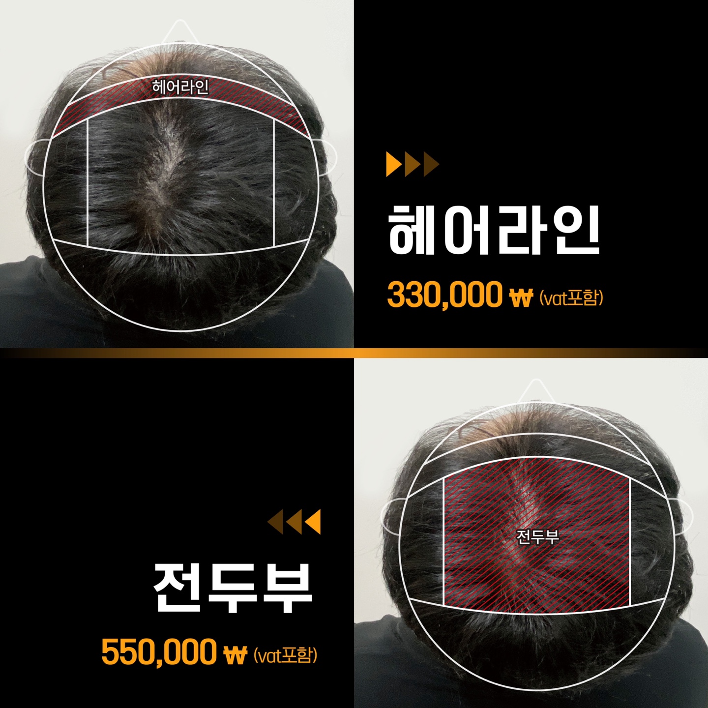 기존 두피문신의 1/5 가격 (같은 면적 대비)