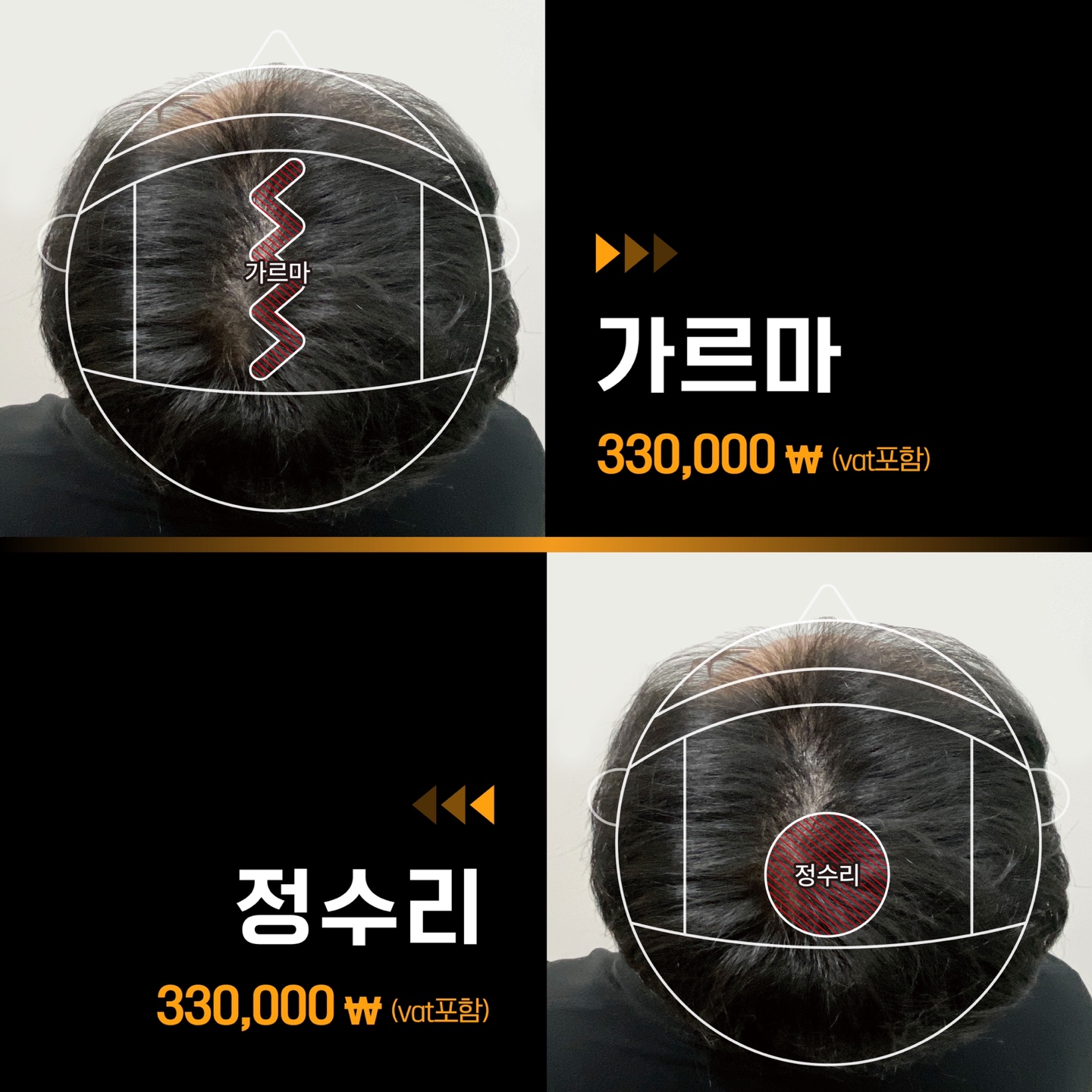 정수리, 헤어라인의 빈모를 채우고 싶으신 분
